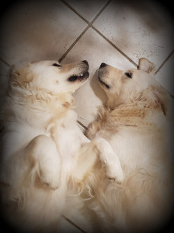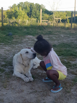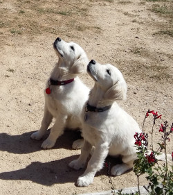Voici Perla et Pouchka, nos deux golden-retriever. Elles sont nées le 05 Avril 2019 et sont les filles de Irresistible Iona de la Foret des Pyramides et Napoleon des Jardins d’Epona . Leur point commun: elles sont inséparables. Bref, des vrais caractères de goldens.